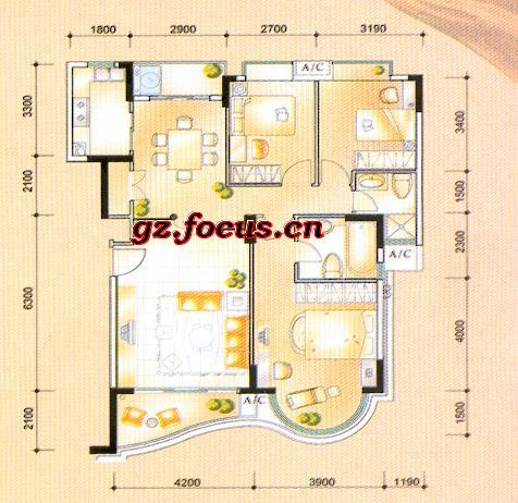 2室1厅2卫-凯怡庭A-C座、凯悦庭A-C座标准户型图(01-02)户型