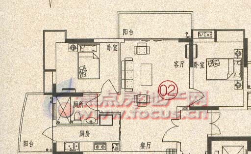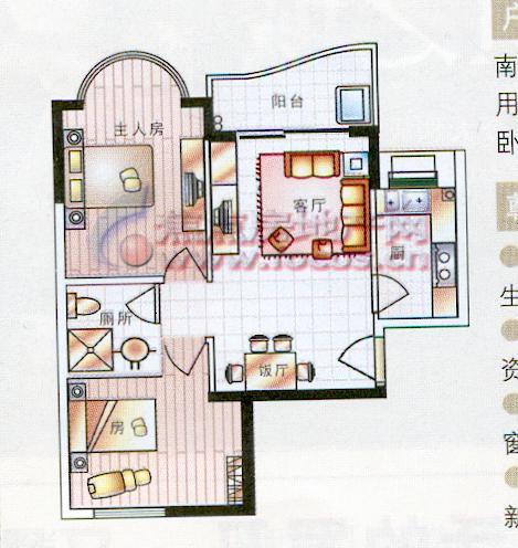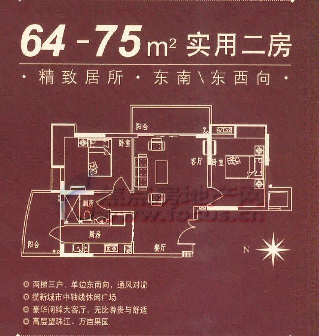 2室2厅1卫-凯御庭中轴广场花园大宅实用两房户型