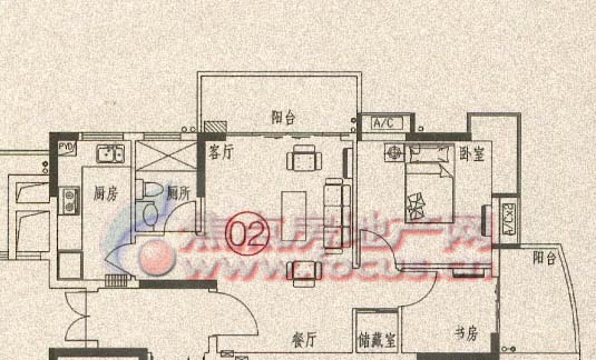 1室1厅1卫-罗马家园凯雅庭A8栋02单元户型