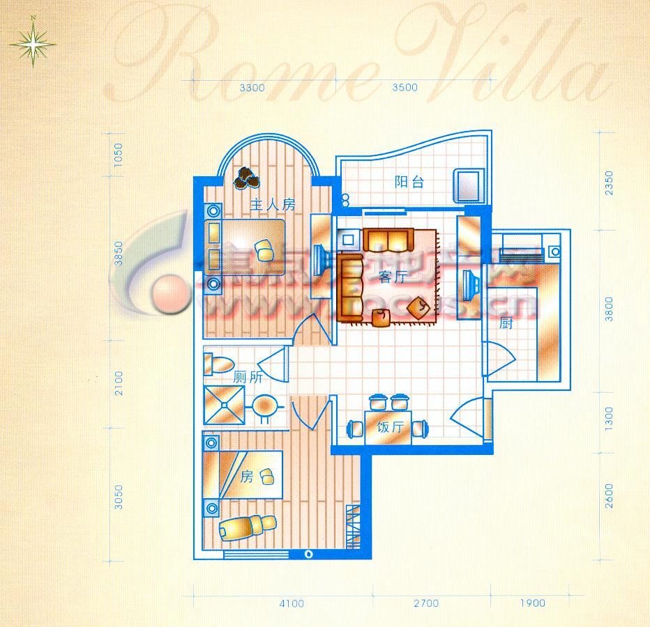 2室2厅1卫-罗马家园凯雅庭A1~A5逸品雅阁户型
