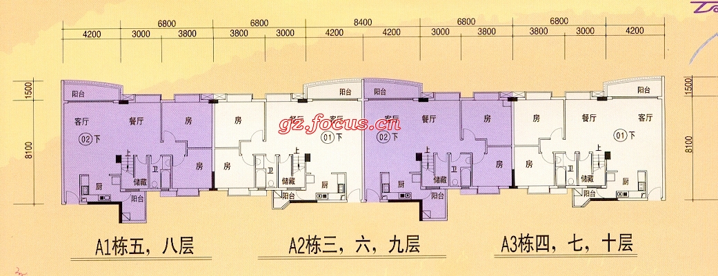 0室-A1栋5、8层,A2栋3、6、9层,A3栋4、7、10层平面