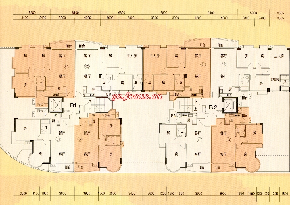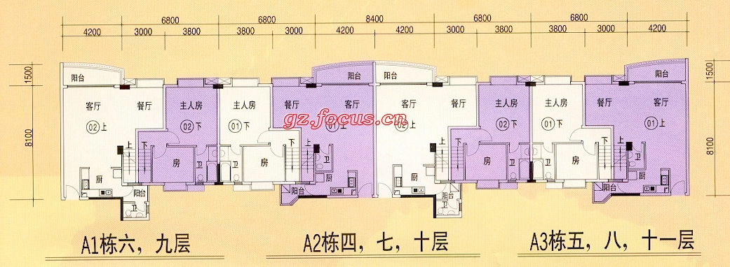 0室-A1栋6、9层,A2栋4、7、10层,A3栋5、8、11层平面