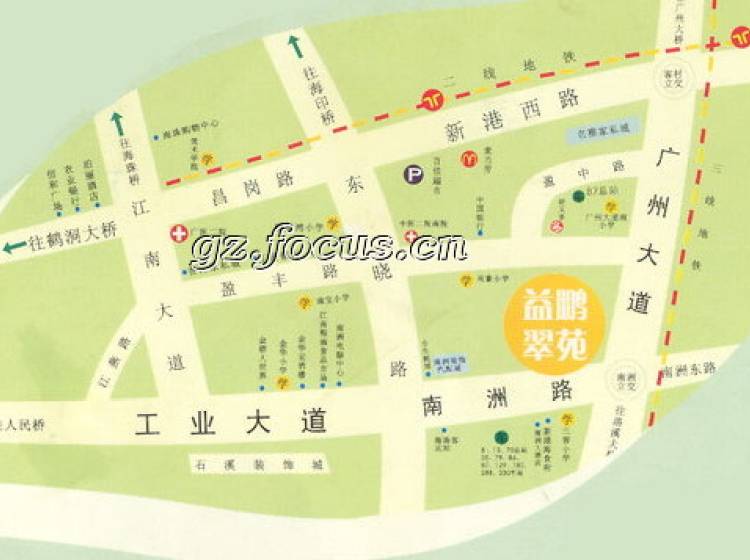 益鹏翠苑位于海珠区广州大道与工业大道交汇处,是高尚智能园林电梯小区,生活配套完善,交通方便,广州大道南、地铁3号线和广佛线双地铁站出口,20余路车的公交总站以及海珠客运站近在咫尺。