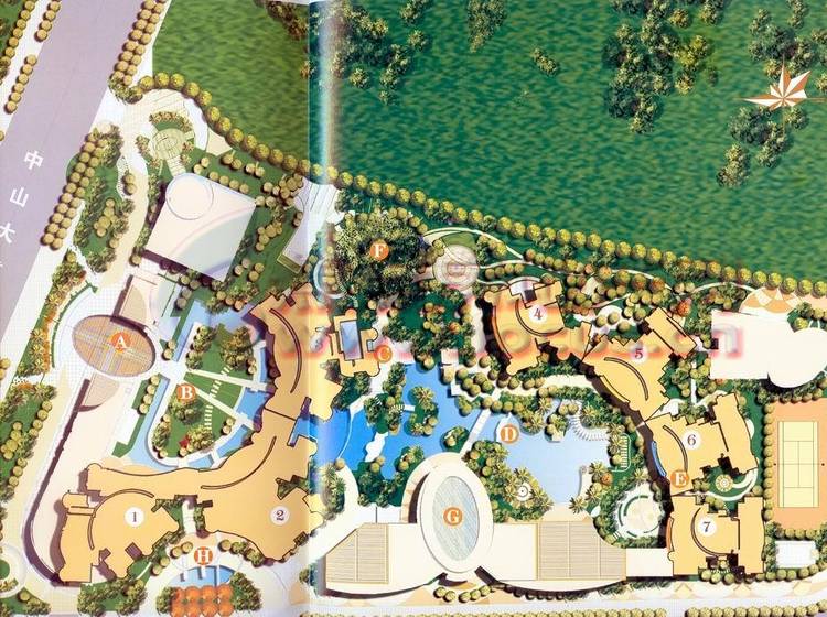 ◎四大国际风情主题园林、首创22米高架空观景台、会所、泳池、网球场。