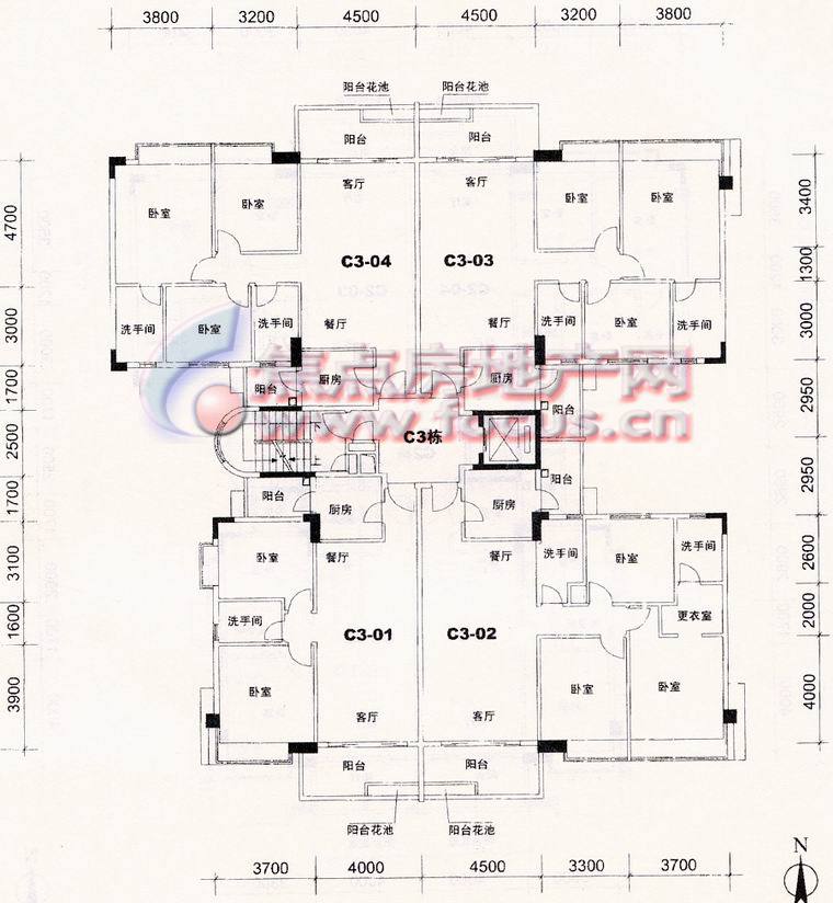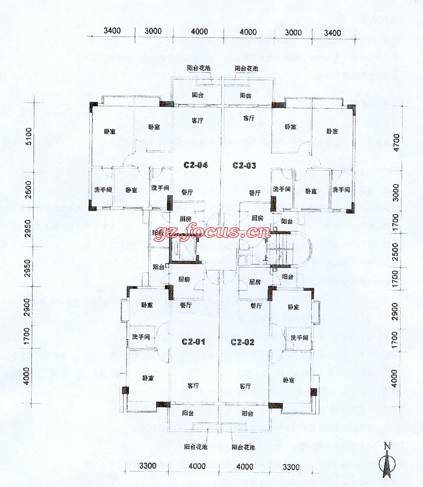 0室-C3座2至11层平面图