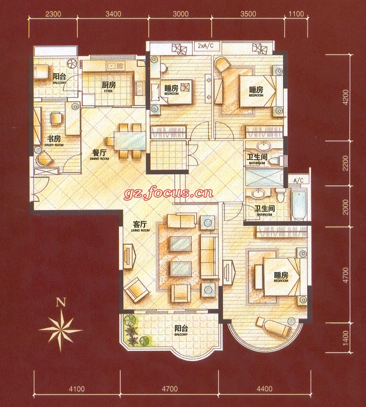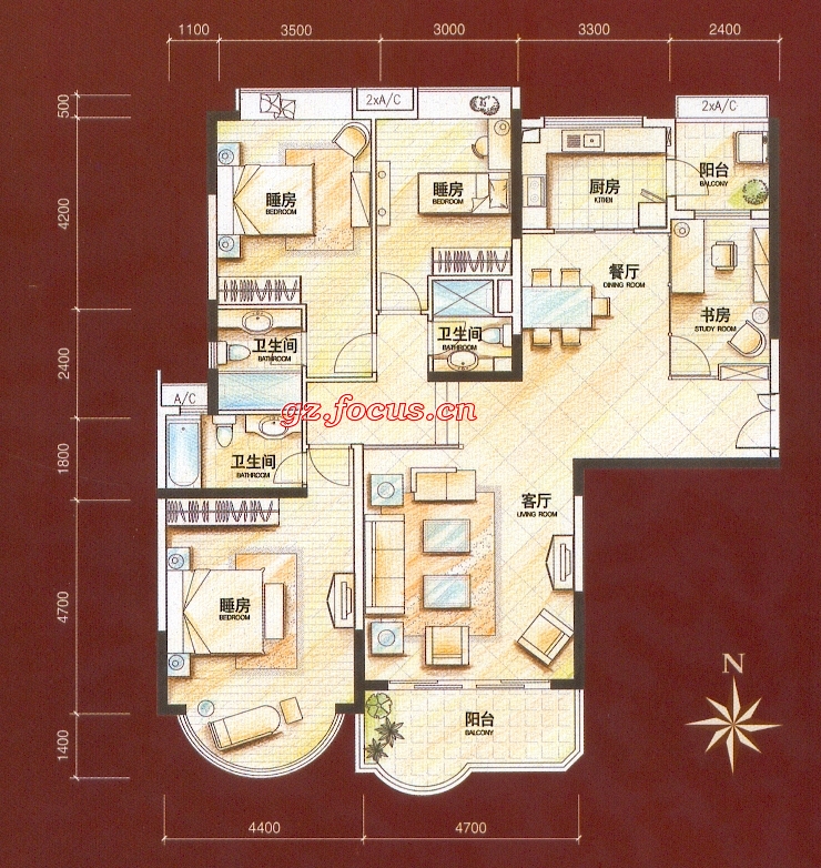 4室2厅2卫-帝景华苑帝灏轩B-102单元平面