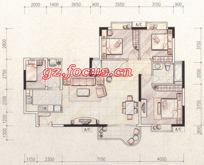 珠江熙苑爵朗轩为两梯四户,户户南向,带豪华装修。