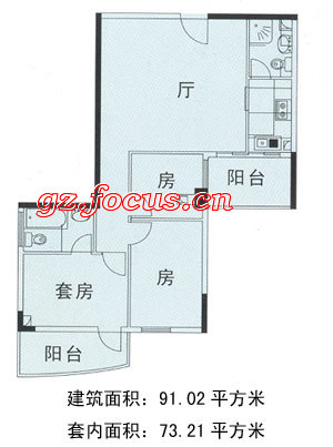 建面91.02m²