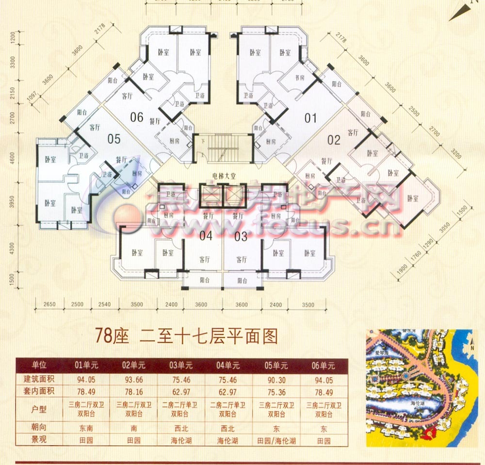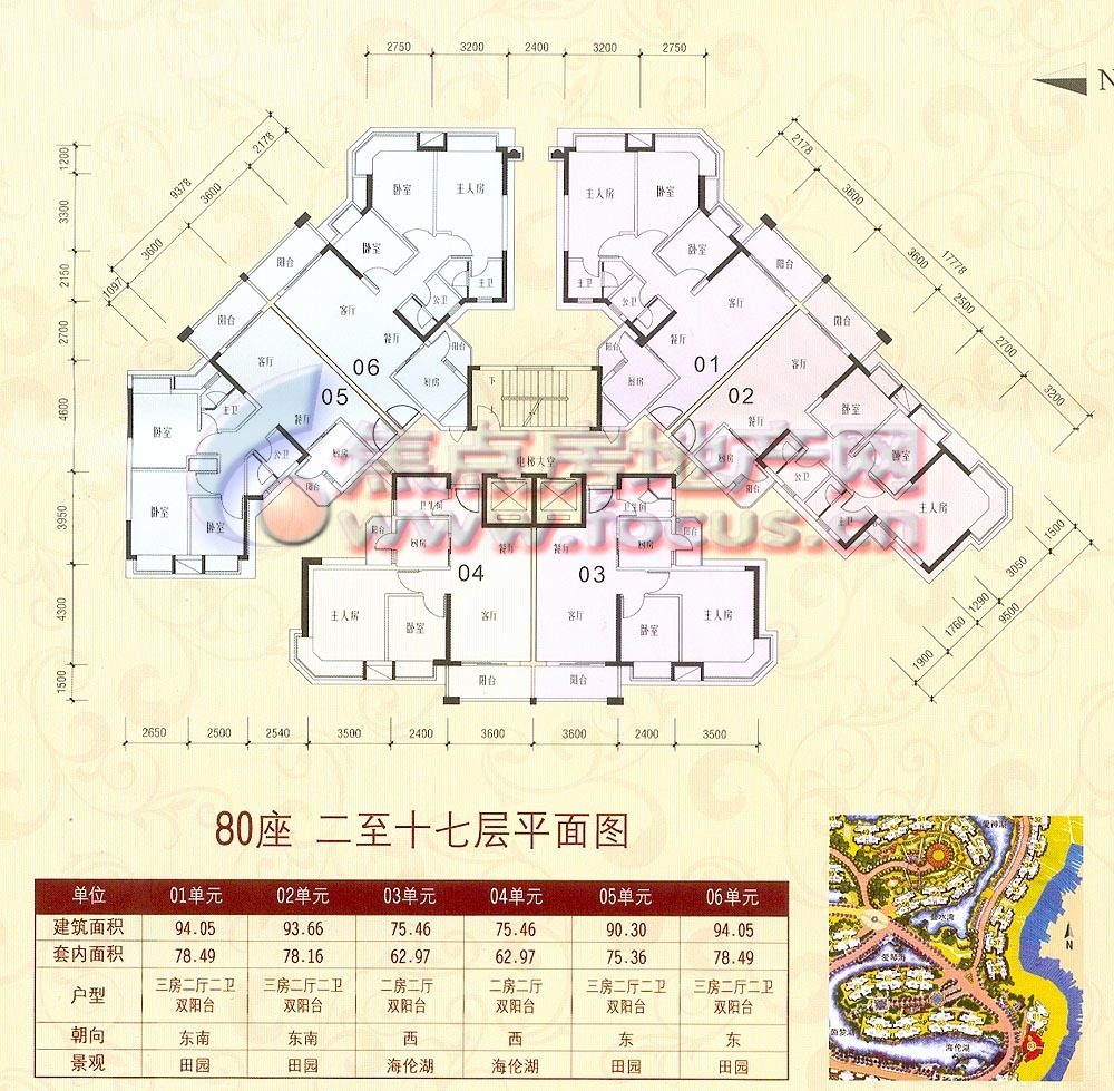 首期21栋小高层,在水岸规划上以半岛水岸的全新规划理念为设计点,以湖景和堤岸绿化连接南北分布的三个半岛,两万平方米的水域贯穿整个社区。一梯四户、工字形结构或改良的蝶型结构;80-120平方米二房至四房等多款户型;间隔方正,南北对流,大飘窗、大阳台设计;50米超宽楼距。