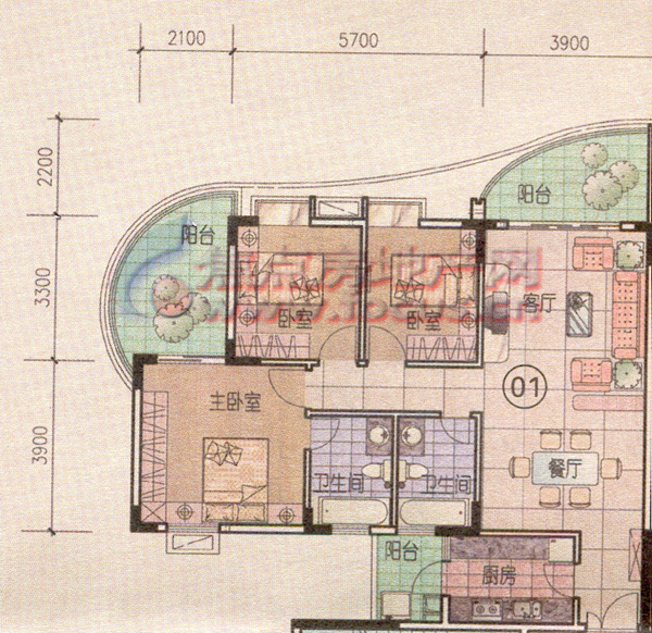 0室-云峰花园2期云雅阁2栋3-10层01单元户型