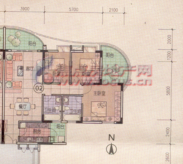 0室-云峰花园2期云雅阁2栋3-10层02单元户型