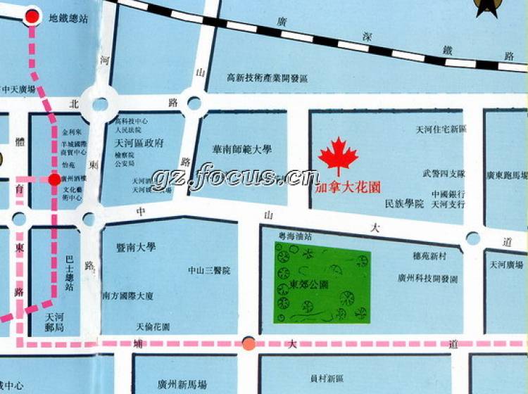 加拿大花园位于天河区枫叶路,毗邻华景新城,小区由9栋住宅组成,两栋9层高,一栋22层高,两栋25层高以及四栋28层。小区内配套有露天泳池、中英文幼儿园、羽毛球场,区内环境绿化好,管理安全,保安分八轮班三班制。 加拿大花园小区门口是公交车站,离天河公园只有五的路程,周边配套还有:邮政局、农业银行、工商银行、繁华的小吃街与购物街、上社综合肉菜市场、百佳超市,小区安静,地点繁华,是白领与住家的聚集地,为每一位住户提供更便利的生活环境。