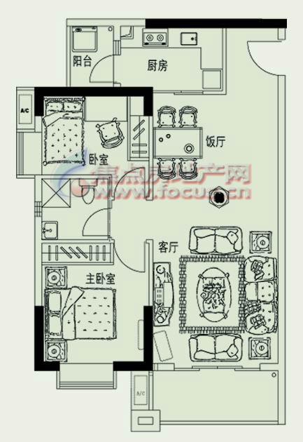 2室2厅1卫-海棠两房两厅