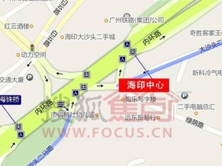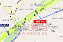 海印中心位于越秀区东华南路和大沙头二马路交接处,紧邻大沙头海印电器城。总建筑面积约64917平方米,裙楼为商业、餐饮类用房,塔楼为两幢办公和住宅塔楼,办公塔楼为32层,住宅塔楼为39层。