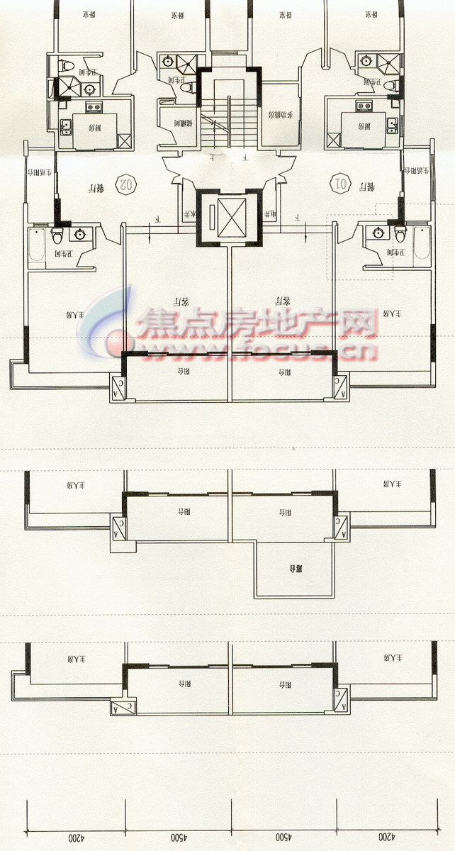 一栋TOWNHOUSE总楼高为5层,远看有如一栋多层住宅,但实际上它是将两套TOWNHOUSE互相“咬合”,并上下叠加起来(如户型剖面图)。居于下的A型单位面积为240平方米,居于上的B型单位面积为260平方米。