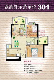 项目由首期2栋32层连体高层组成,两个塔楼分别是南座荔韵轩和北座荔逸轩。地下一二层为停车场,车位99个。首层为临街商铺,小区内为花园,二层为平台花园。2-32层则为住宅。项目总占地面约1.8万平方米,建筑面积约7.6万平方米,首期建筑面积约为4万平方米,共有住宅486套。