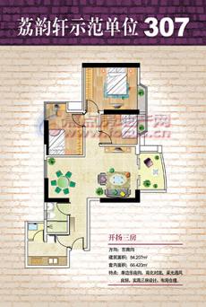 2室2厅1卫-文昌雅居荔韵轩303单元平面