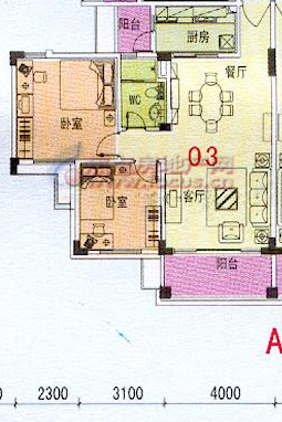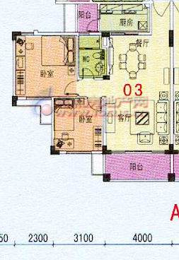 2室2厅1卫-南沙碧桂园“优蓝”洋房NG6(A)四层03单元