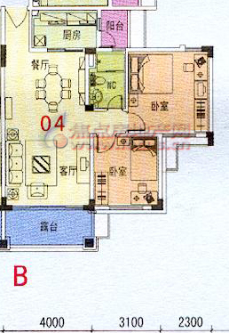 2室2厅1卫-南沙碧桂园“优蓝”洋房NG6(B)四层04单元