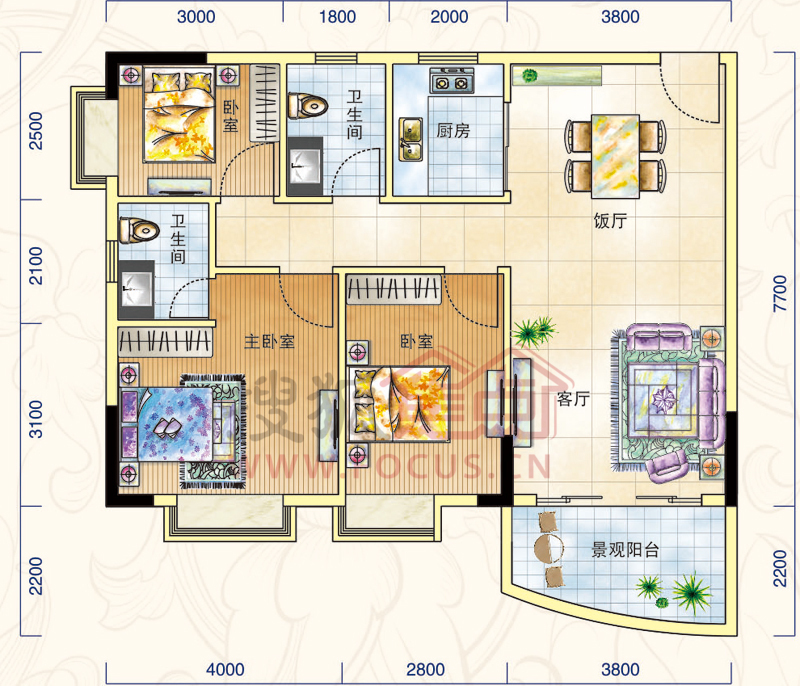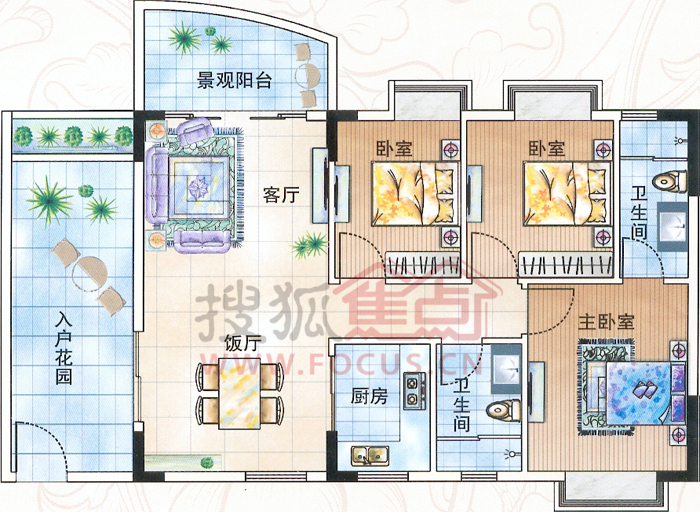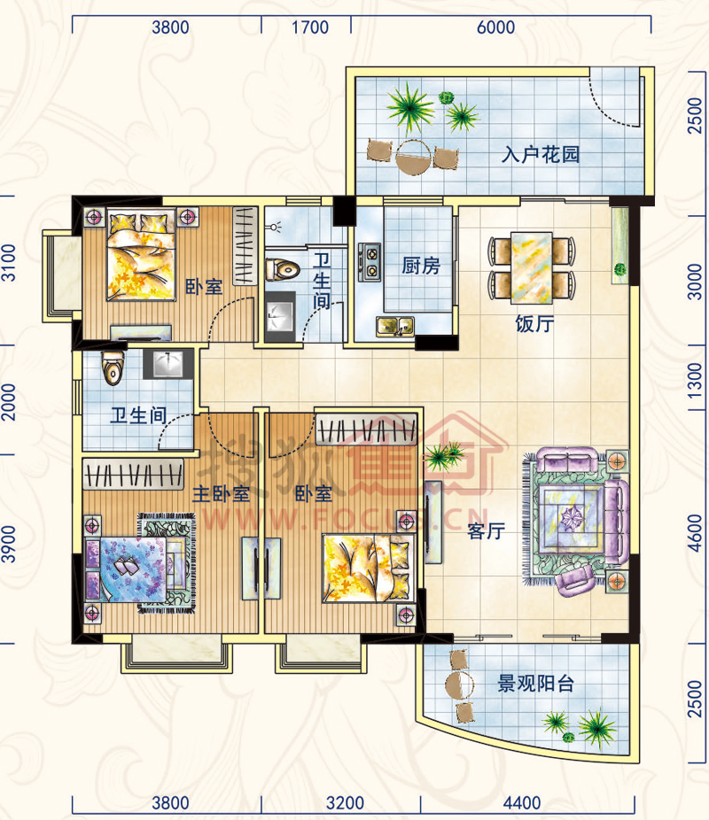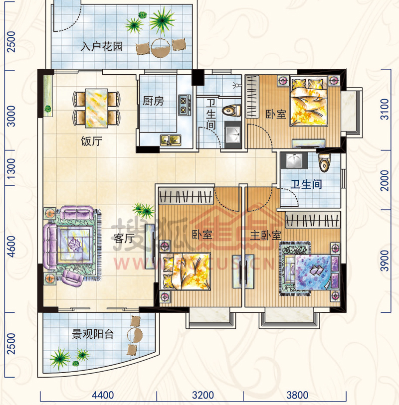 3室2厅2卫-C2/C4/C6栋01单元三房两厅
