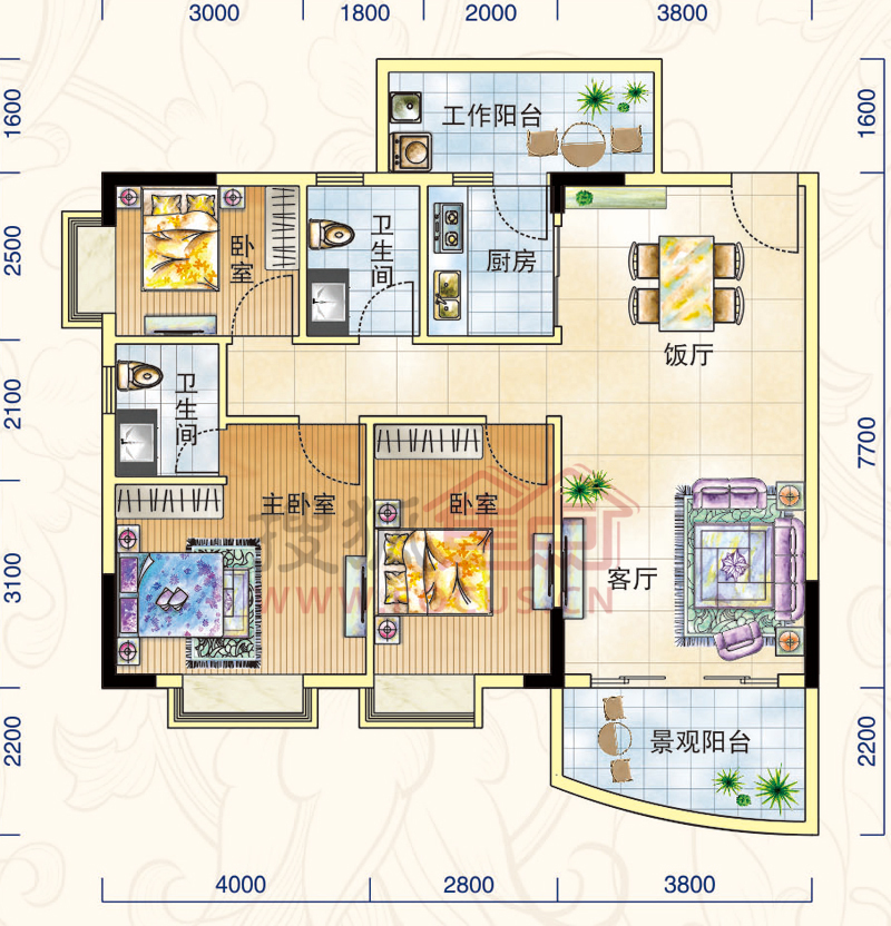 3室2厅2卫-C2/C4/C6栋02单元三房两厅