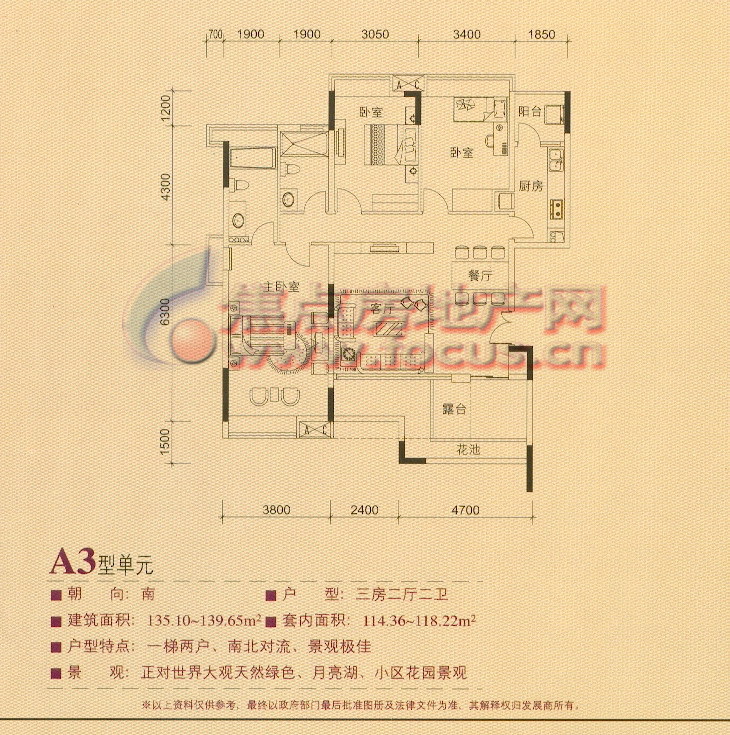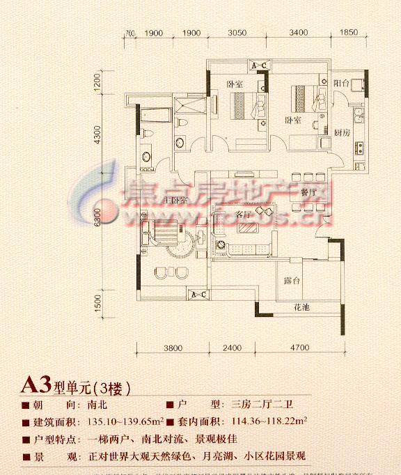 3室2厅2卫-半山溪谷E墅怡景湾A3型单元(3楼)