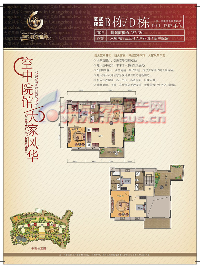 6室2厅3卫-南航明珠雅苑B栋.D栋1201.1202单位平面图