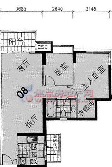 2室2厅1卫-逸翠湾7座5-33层08单位88.58㎡二房二厅