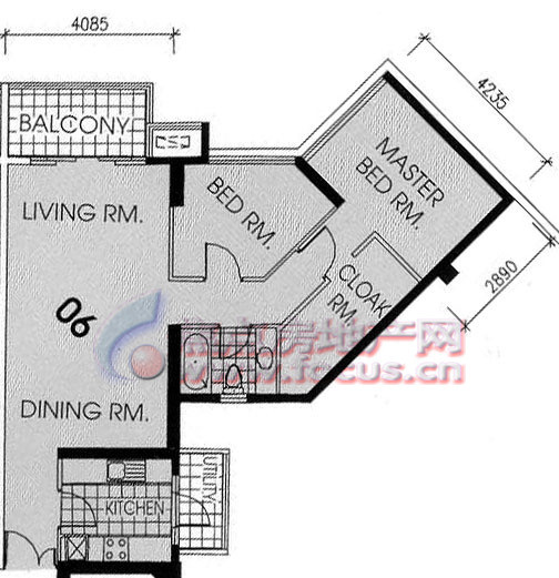 2室2厅1卫-和黄逸翠湾一座5-25层08单元88.43㎡两房两厅