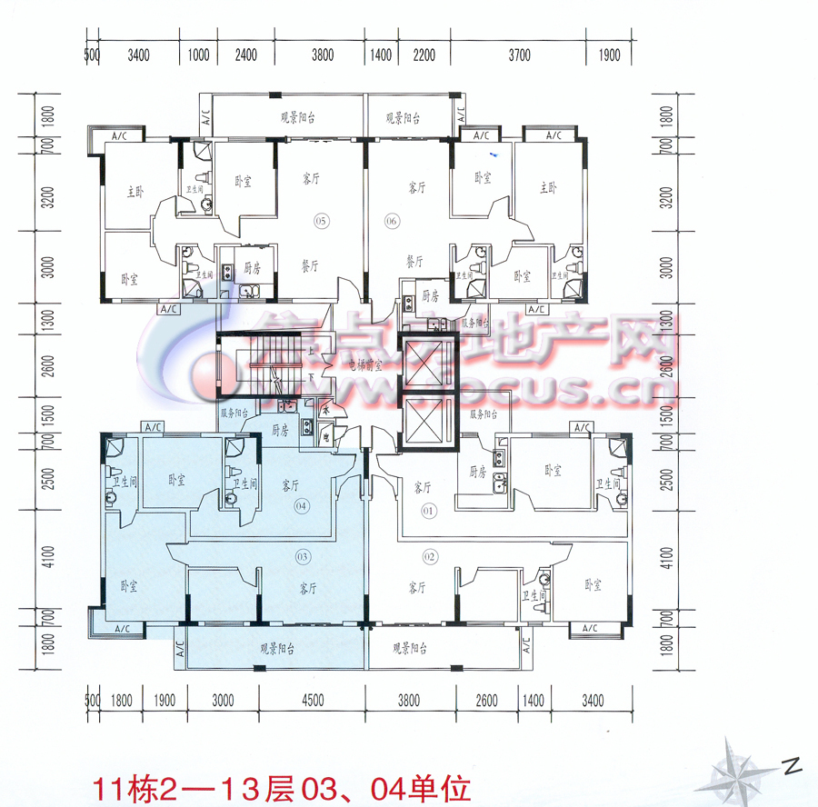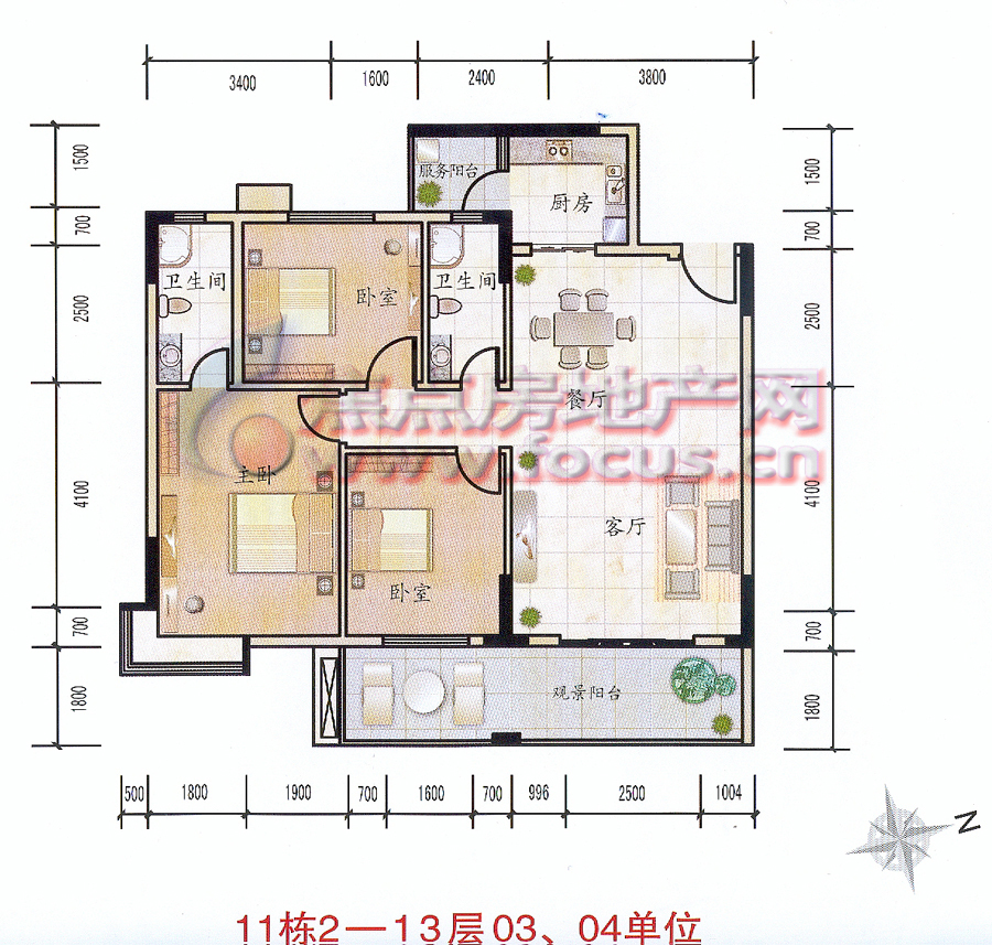 3室2厅2卫-兴隆花园豪庭(江畔豪庭)11栋2-13层03-04单位平面图