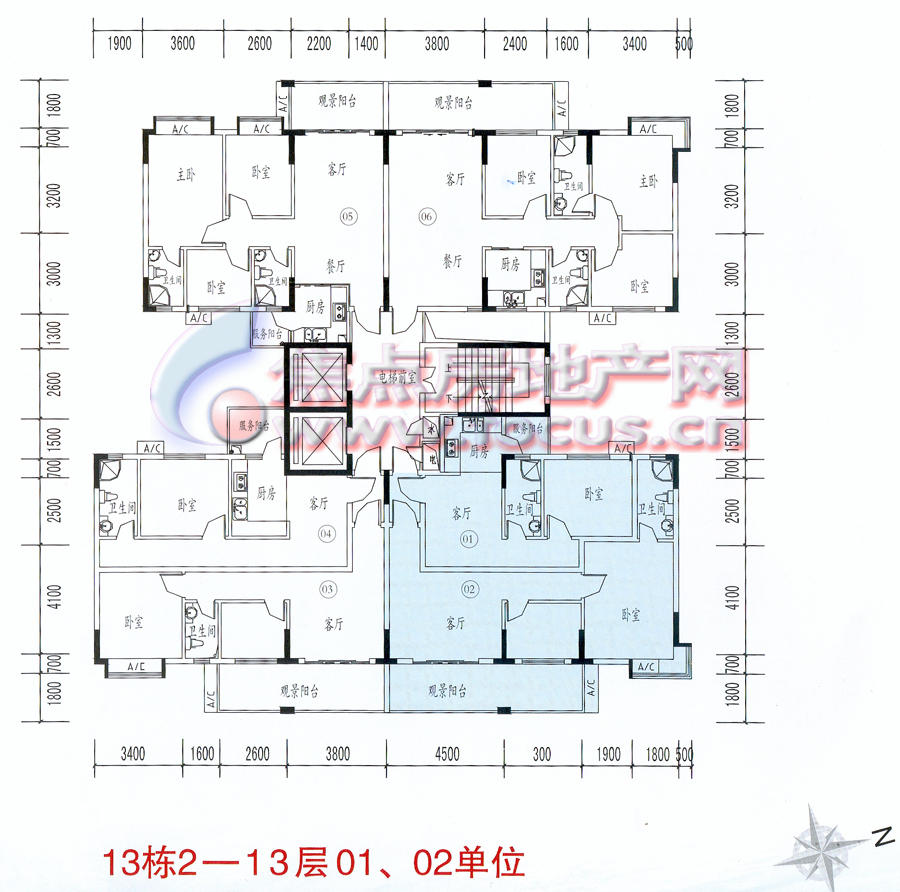 3室2厅2卫-兴隆花园豪庭(江畔豪庭)13栋2-13层01-02单位平面图