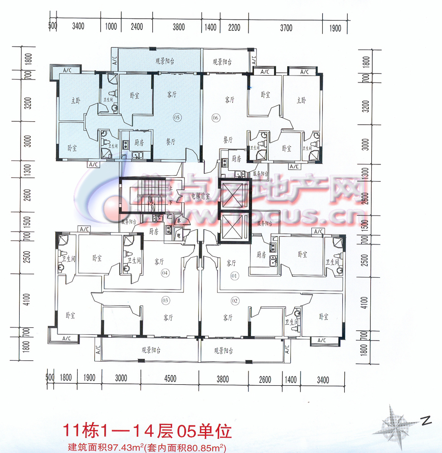 3室2厅2卫-兴隆花园豪庭(江畔豪庭)11栋1-14层05单位平面图