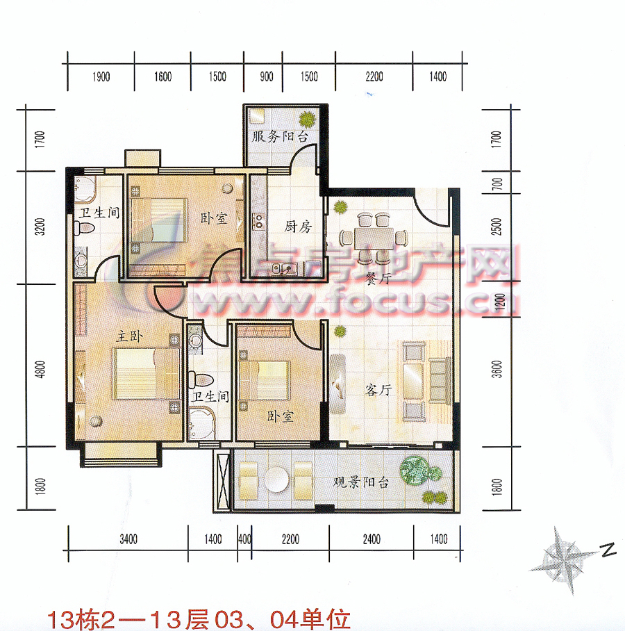 3室2厅2卫-兴隆花园豪庭(江畔豪庭)13栋2-13层03-04单位平面图