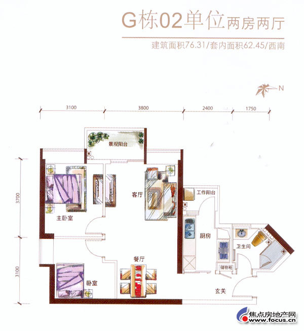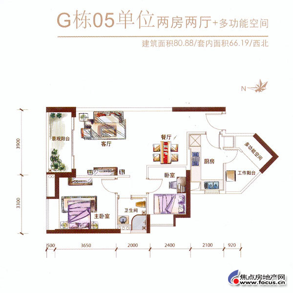 2室2厅1卫-保利心语花园3期F栋03单元