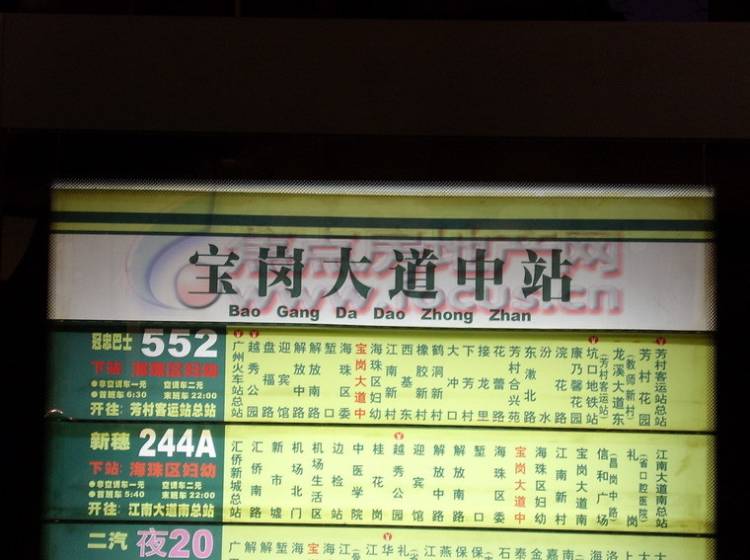 宝岗大道总站,途经的线路包括50路、5路、270路、250路、23路夜车、18路、50路、561路、269路、296路。