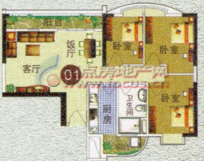 3室2厅1卫-润田雅苑金牌房型A3-01单元