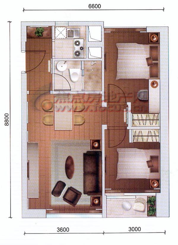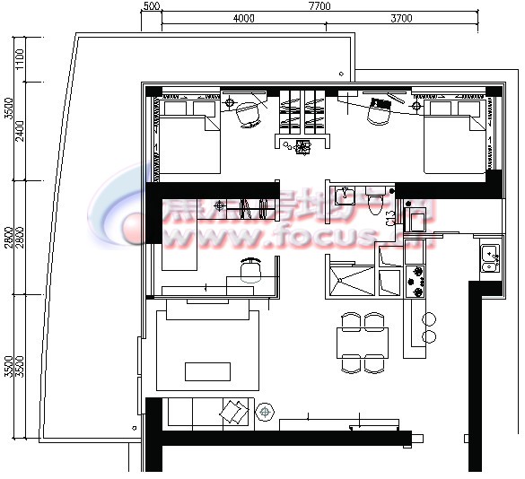 2室2厅1卫-嘉裕礼顿阳光国际公寓二号行政套房