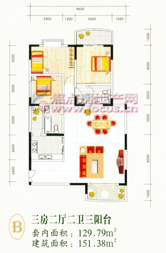 3室2厅2卫-翡翠名都三房二厅二卫B型单元平面