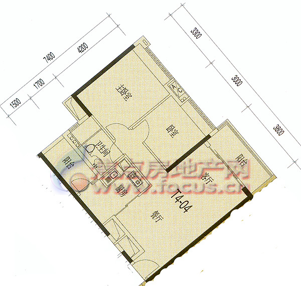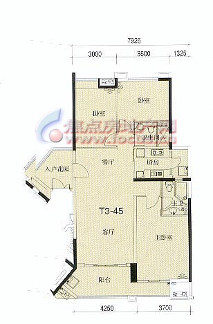 2室2厅1卫-兰亭御园T3(3-30层)02单位