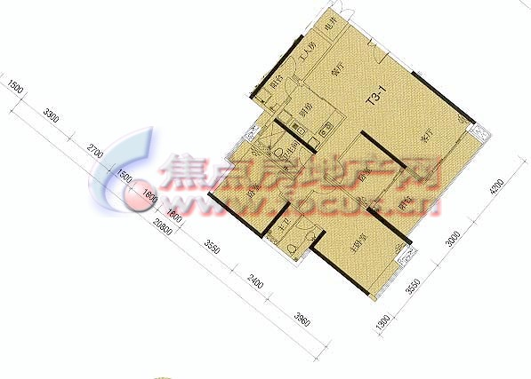2室2厅1卫-兰亭御园T3(3-30层)03单位