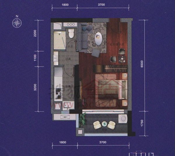 1室1厅1卫-A栋03户型1房1厅1卫39㎡