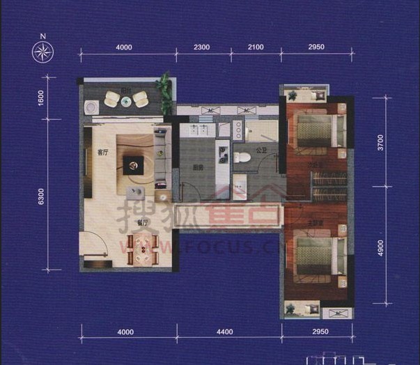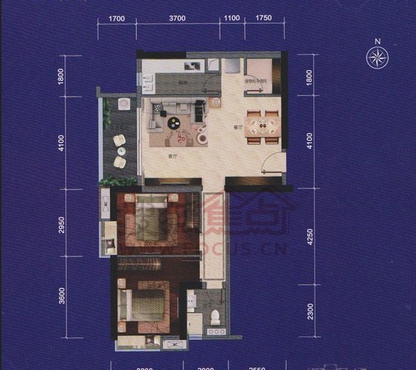 2室2厅1卫-A栋04户型2房2厅1卫93㎡
