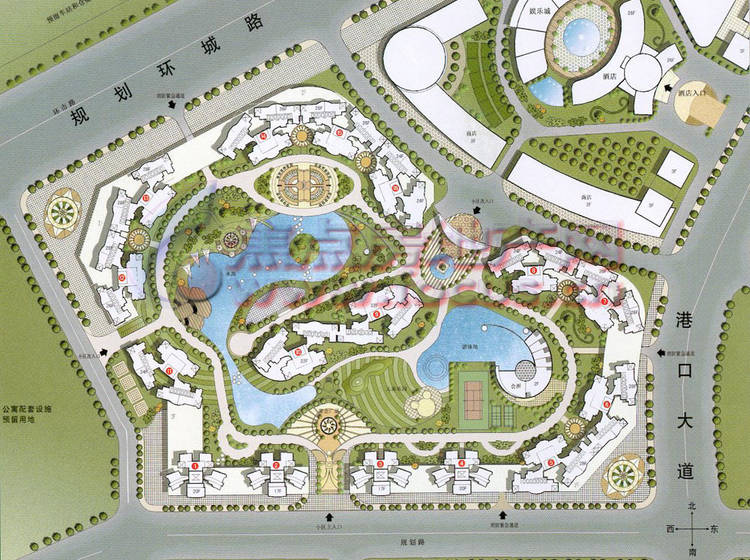 小区内部配套:室内,室外游泳池,热水,煤气,上万米亲水园林,2500M2多功能会所。小区自有:五星级酒店,酒店式公寓,双语小学,幼儿园,医院,大型超市等
