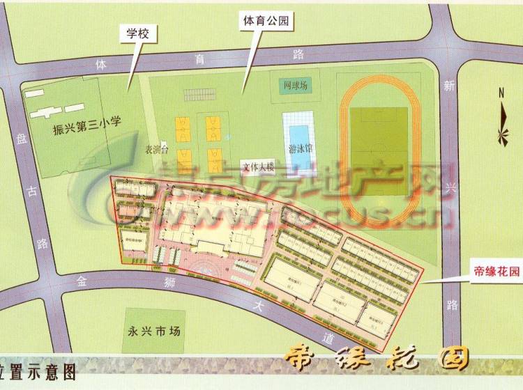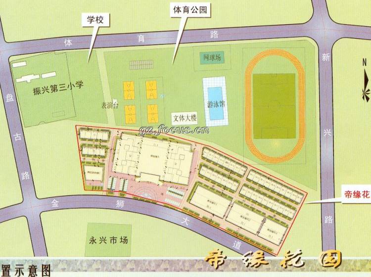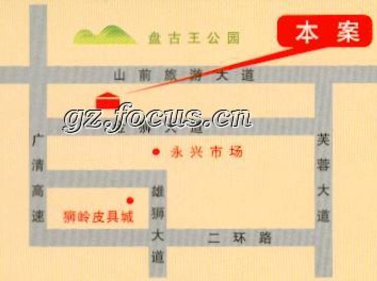花都23路、3路公交、狮岭到新华的专线以及狮岭到广州桂花岗的专线都经过该项目,可以在永兴市场站下车。