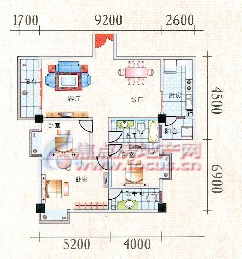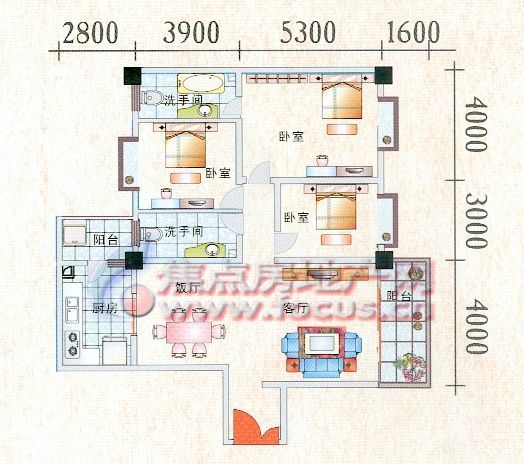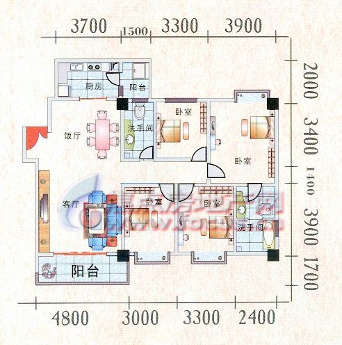 3室2厅2卫-二期腾龙阁A3,A4座142-143㎡C