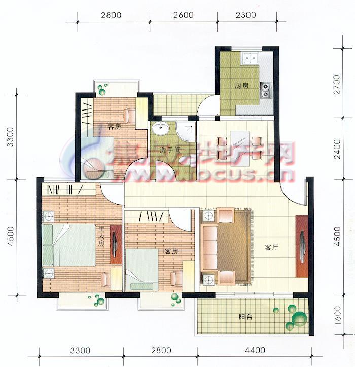 3室2厅1卫-紫泉翠绿嘉园2期C1单位
