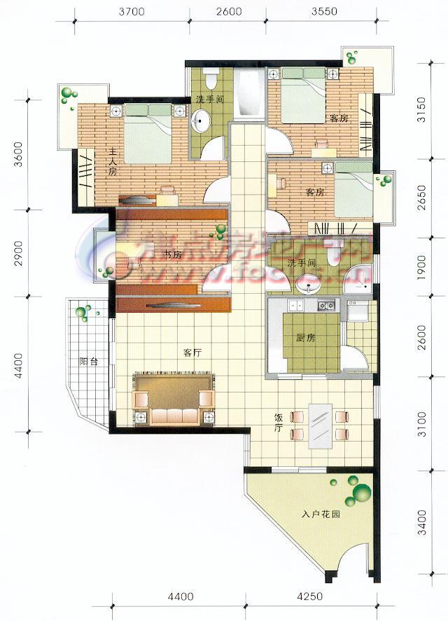 4室2厅2卫-紫泉翠绿嘉园2期B3单位