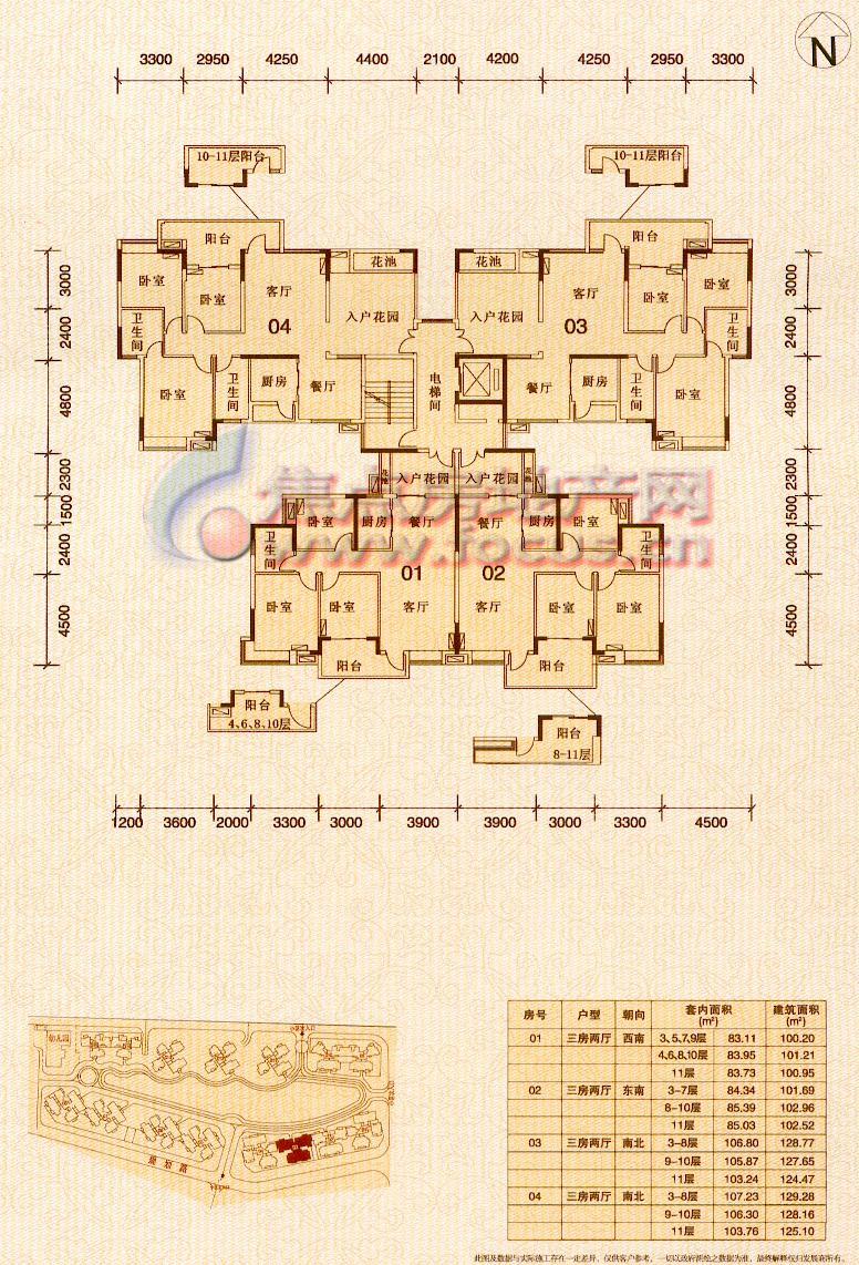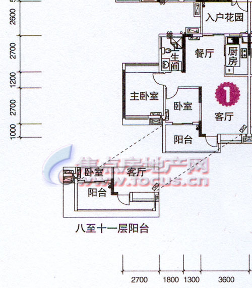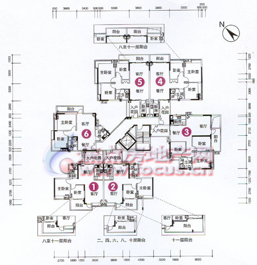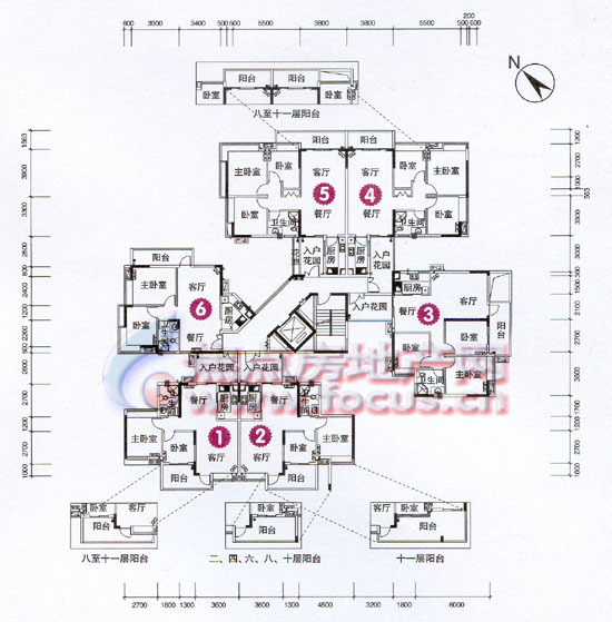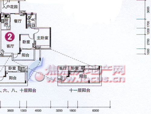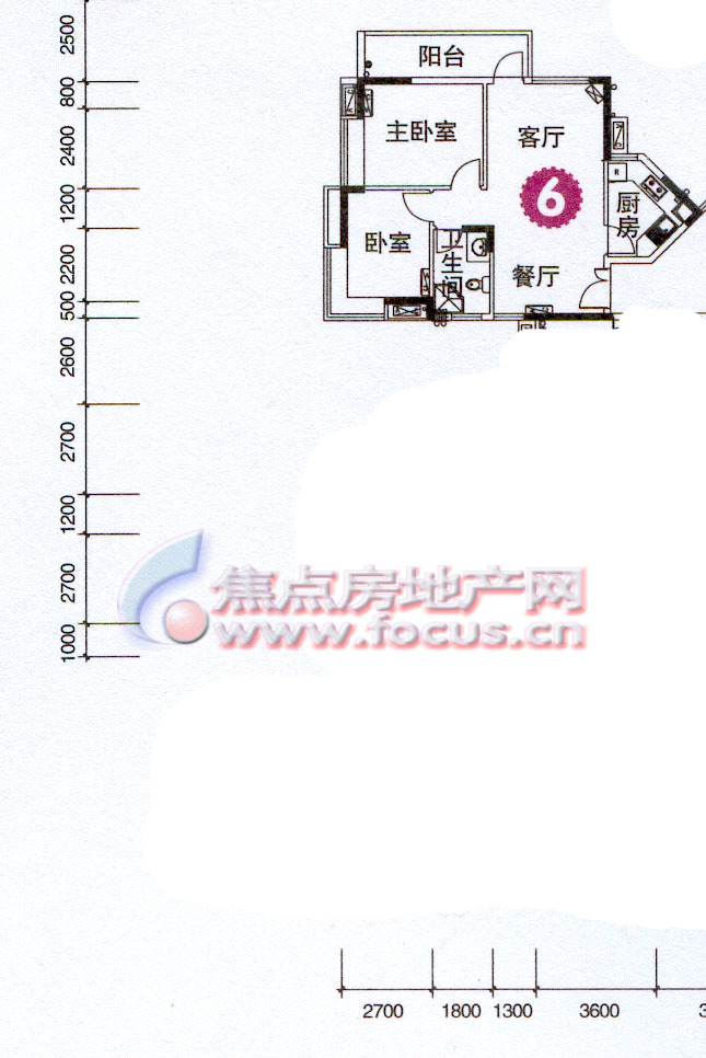 2室2厅1卫-富港优山美地2期D7,D8标准层06单位三房两厅建筑面积62.35平米