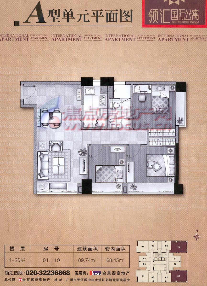 0室-领汇国际公寓B型4-25层02、03、08、09单元