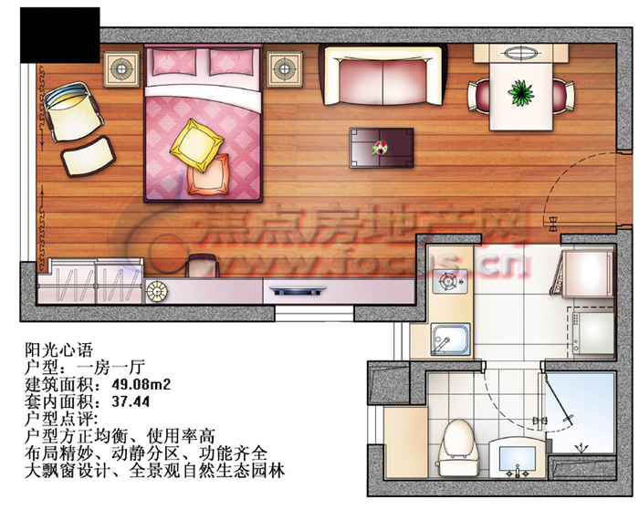 0室-2007金牌户型参选-领汇国际公寓阳光心语建筑面积49平方米套内面积37平方米